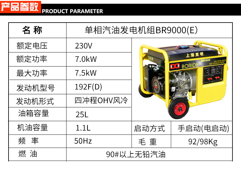* 表示必填采購:單相7kW小型汽油發(fā)電機(jī)組 BR9000(E)